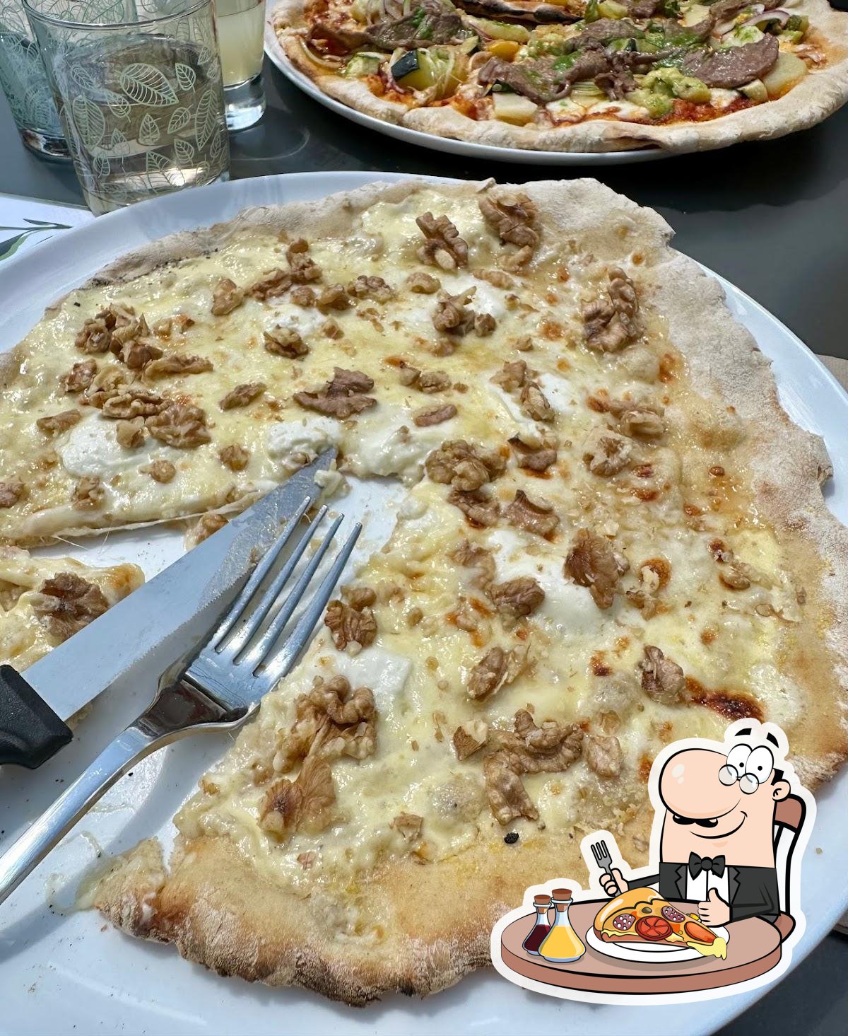 Genießen Sie vor Ort oder zum Mitnehmen Pizzen aus dem Holzofen, die mit ausgewählten Zutaten zubereitet werden: