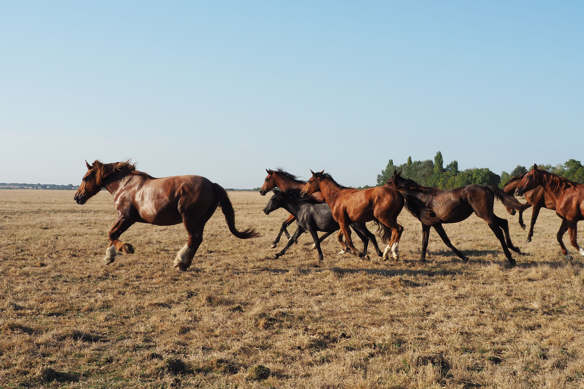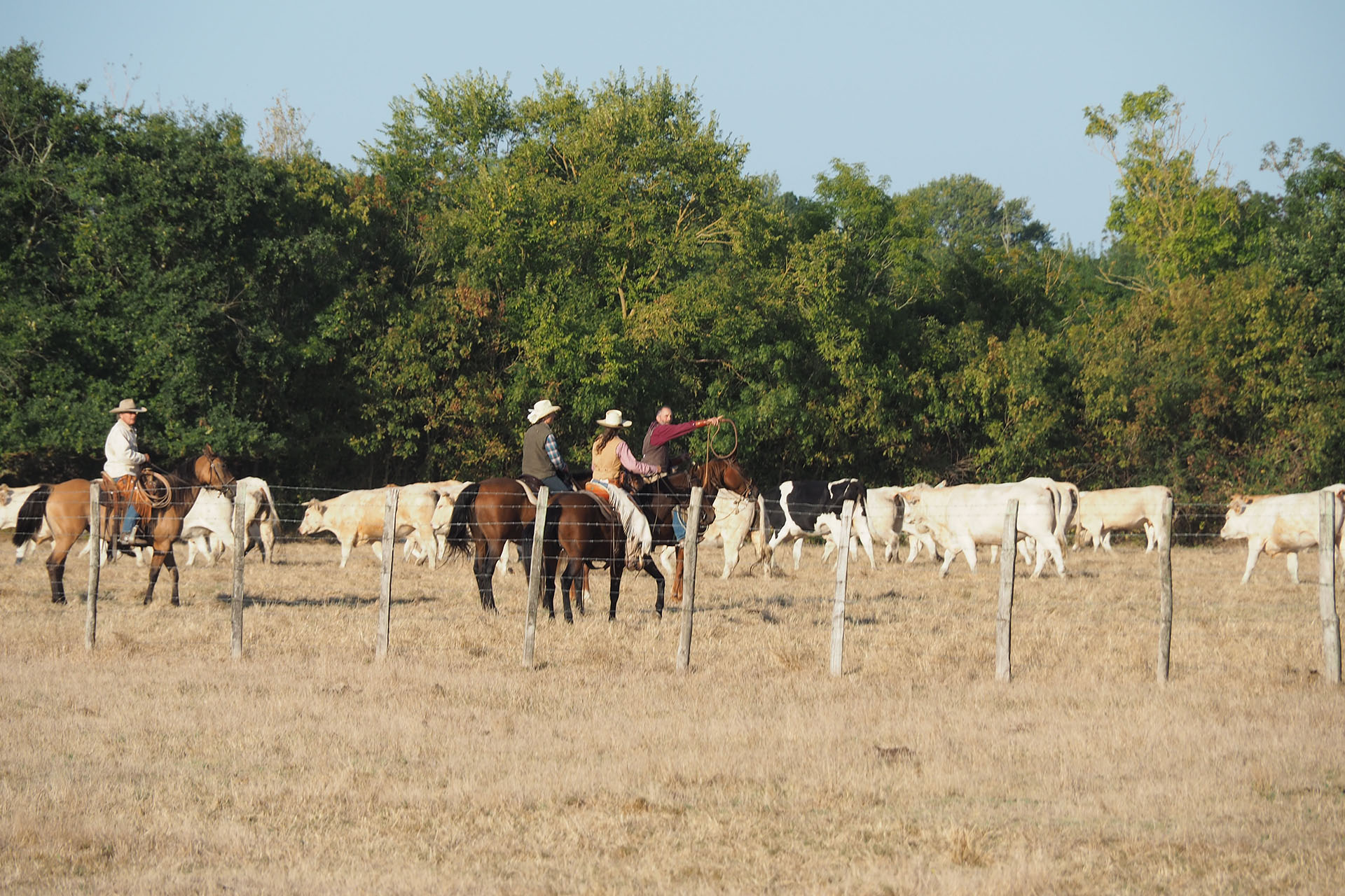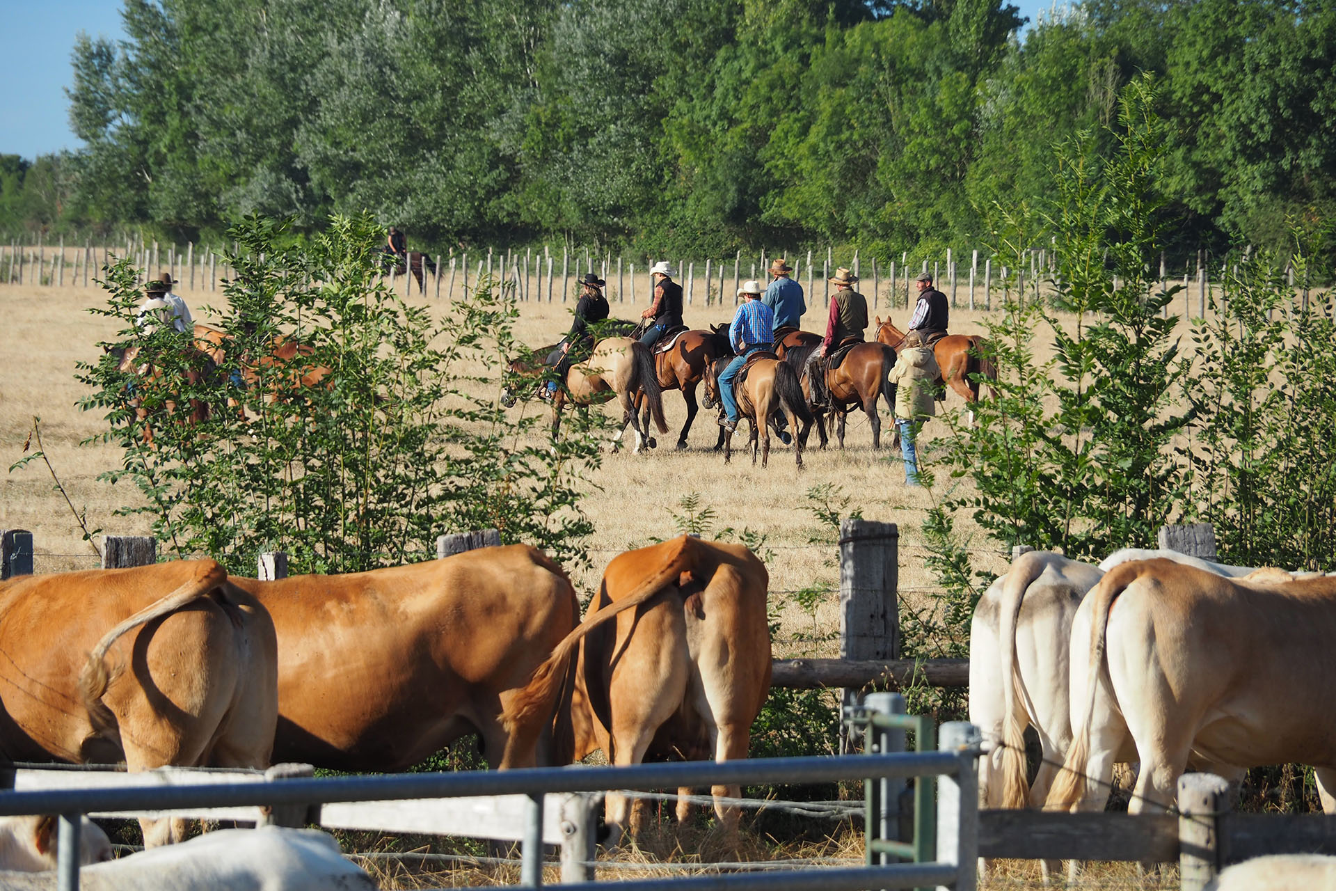 Die Kühe haben keine Angst vor den komischen Reitern, sie sind an sie gewöhnt. Während der gesamten Weidezeit kommt regelmäßig ein Öko-Hirte auf einem Pferd, um sich zu vergewissern, dass alles in Ordnung ist und dass es keine kranken oder verletzten Tiere gibt.