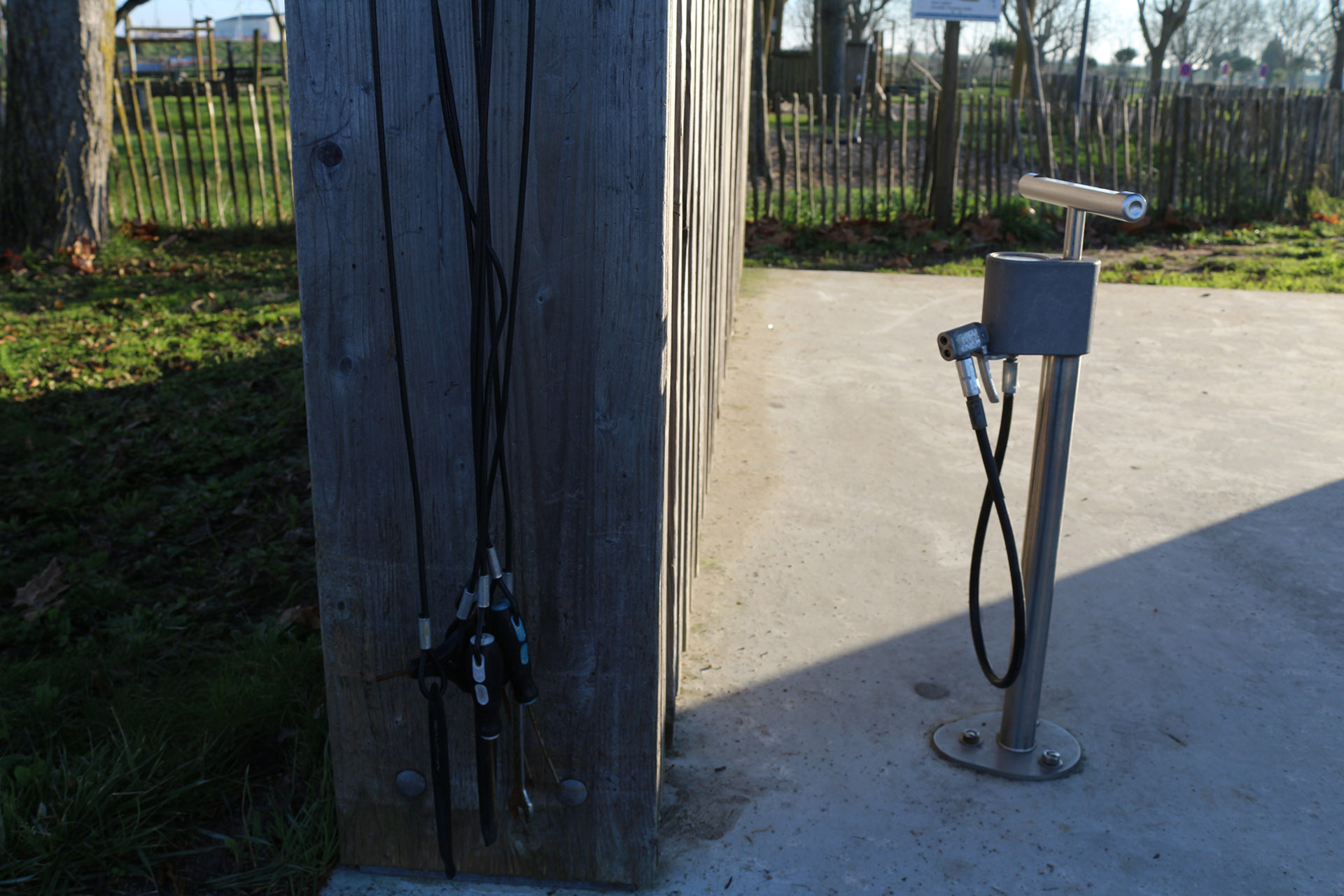 Vor Ort finden Sie Werkzeuge, um kleine Reparaturen an Ihrem Fahrrad durchzuführen, sowie eine Möglichkeit zum Aufpumpen.