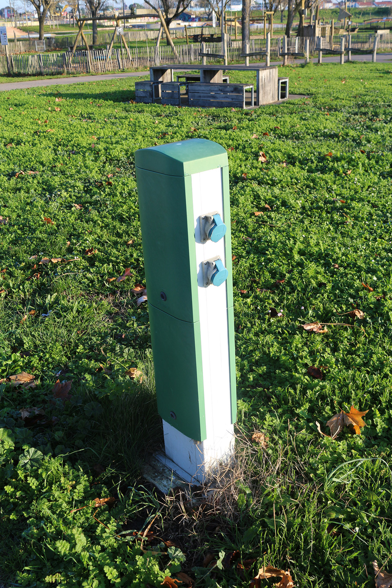 Es gibt auch Steckdosen zum Aufladen Ihres E-Bikes, allerdings benötigen Sie einen Camping-Steckdosenadapter (CEE-Stecker mit drei Stiften).