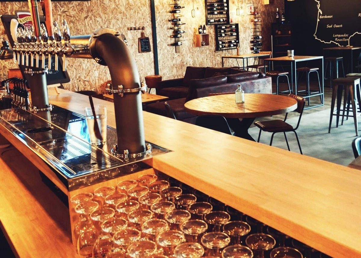 Tauchen Sie in dieser Bier- und Weinstube in eine herzerwärmende Atmosphäre ein, in der jedes Detail der industriellen Einrichtung an Gemütlichkeit und Wohlbefinden erinnert. Das gedämpfte Licht und die rauen Materialien schaffen einen einladenden Kokon, der sich perfekt für gemeinsame Stunden mit Freunden und zum Entspannen eignet.