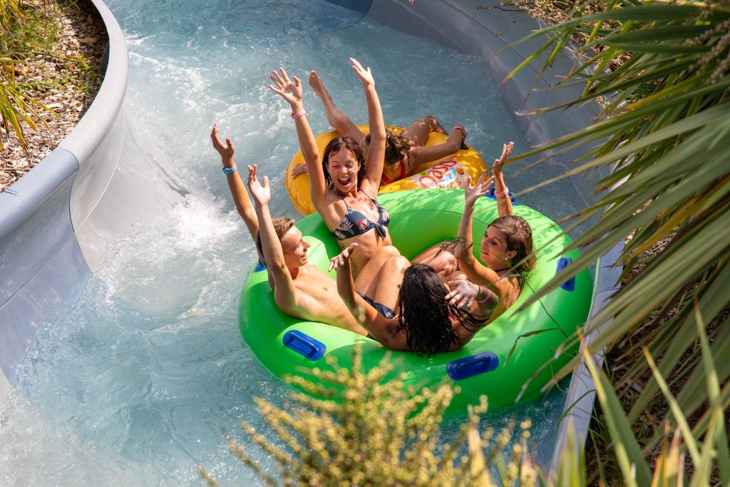 Es gibt Bereiche für Groß und Klein, die den Nervenkitzel lieben oder einen Moment der Entspannung suchen: 16 Rutschen, eine Lagune mit Wasserfall, ein Wellenbad, 400 Meter wilde Flüsse, private Bereiche mit Jacuzzi, ... All das mit den Füßen im weißen Sand und umgeben von einer üppigen Vegetation.