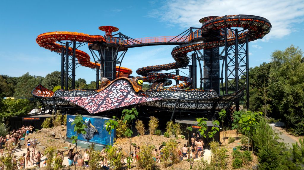 Im Jahr 2026 werden Sie auf der STINGRAY, die zur besten Attraktion der Welt gekürt wurde, eine Menge Spaß haben! Mit seinen vier Rutschen aus 26 Metern Höhe und seinem immersiven Design bietet er ein weltweit einzigartiges Rutscherlebnis.