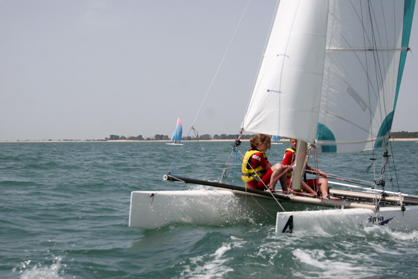 - Lernt an Bord eines Segelkatamarans zu steuern, das Segel zu hissen und den Kurs zu halten, um im Wind über die Wellen zu gleiten. Fantastische Ausfahrten auf dem Meer in der Nähe der künstlichen Muschelbanken und der Muschelzuchtboote.