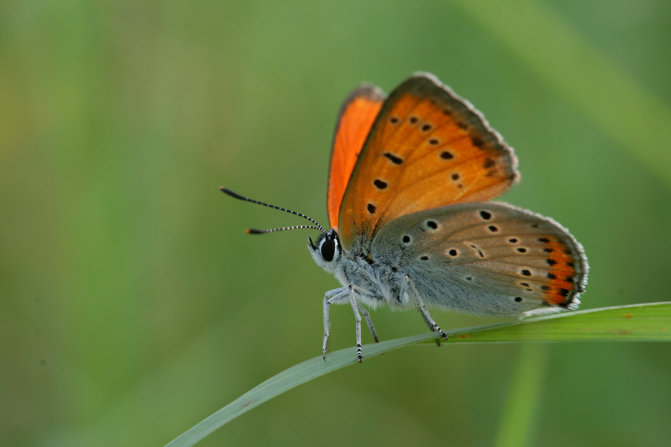 - Der Große Feuerfalter (Lycaena dispar) ist ein kleiner Schmetterling, dessen Flügel orange-rot sind und der in Feuchtgebieten, genauer gesagt in Sümpfen lebt.