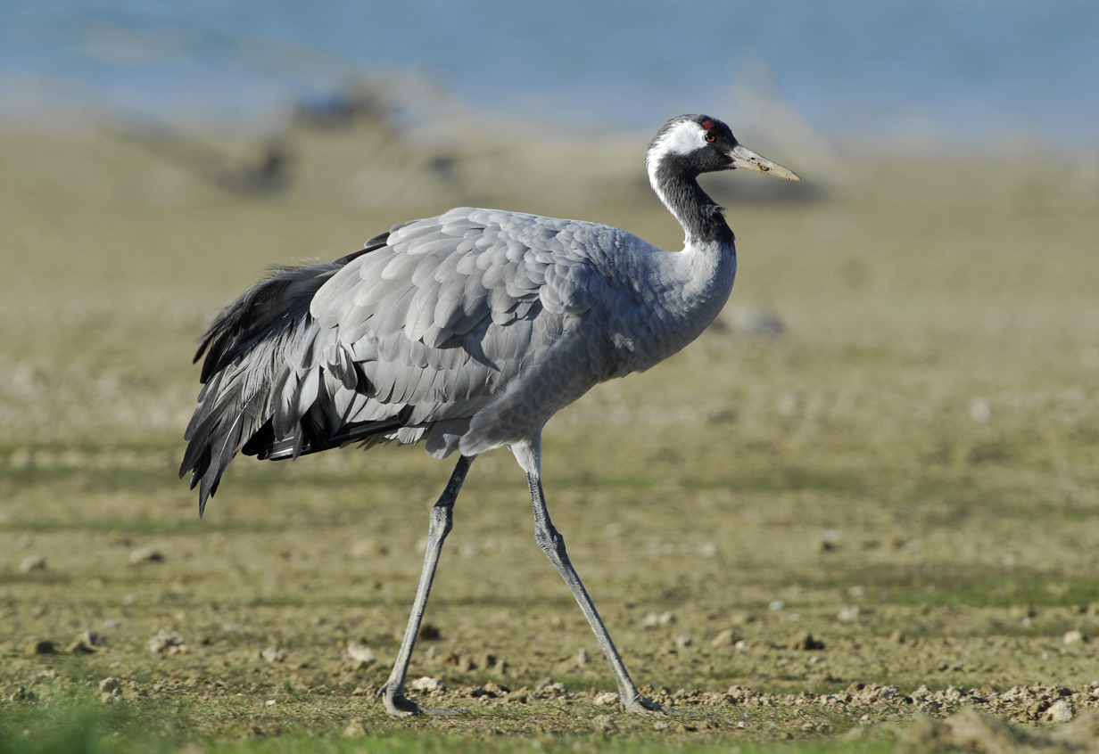- Der Kranich (Grus grus): Der majestätische Kranich ist mit einer Höhe von 1 – 1,30m und Flügelspannweite von 2,30m der größte Stelzvogel Europas. Man kann ihn auch sehr gut an seinem durchdringenden und hartnäckigen Gesang erkennen.