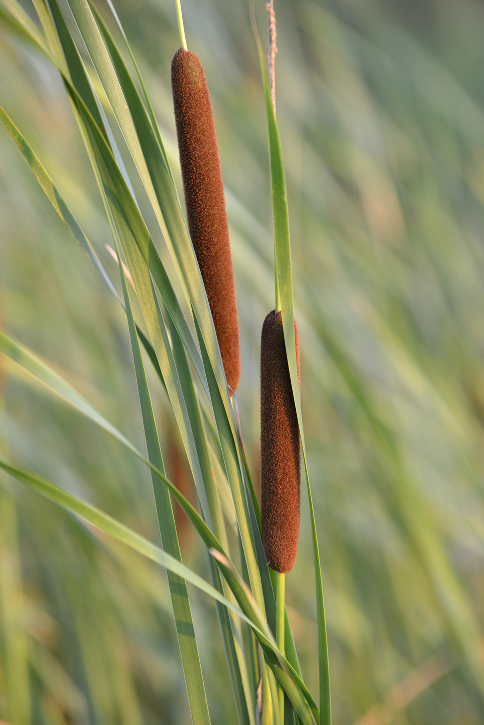 - Der Breitblättrige Rohrkolben (Typha latifolia) wächst an Süßwassern. Die Pflanze kann 1,5 – 3m hoch werden. Sie ist unter anderem nützlich für semiaquatische Säugetiere, die sich von Rhizomen ernähren.