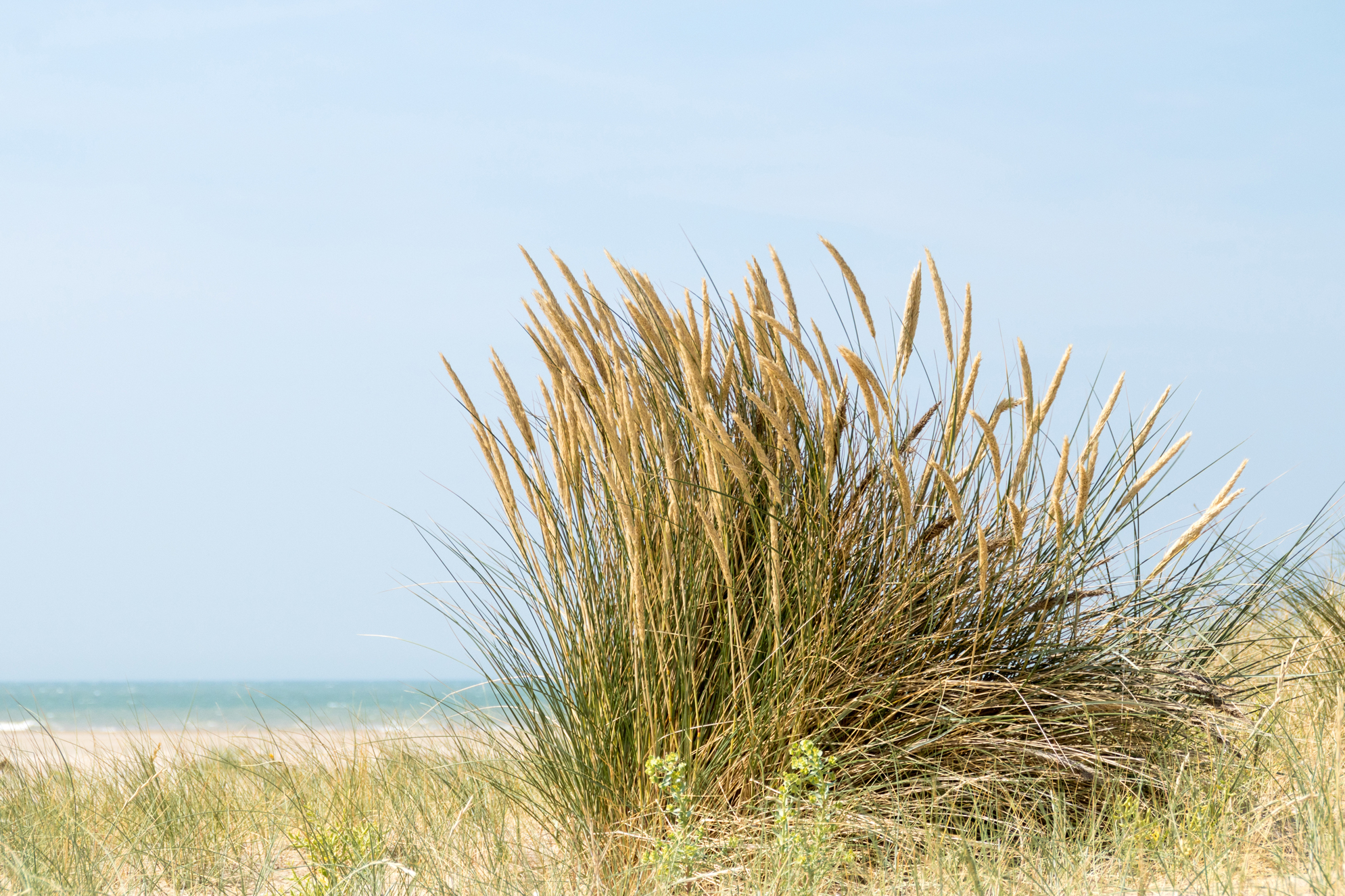 - Der Gewöhnliche Strandhafer (Ammophilia arenaria) ist ein großes Süßgras, das im Sand wächst. Diese Eigenheit und seine große Widerstandsfähigkeit sind ideal zur Stabilisierung der Dünen. Daher muss er geschützt werden!