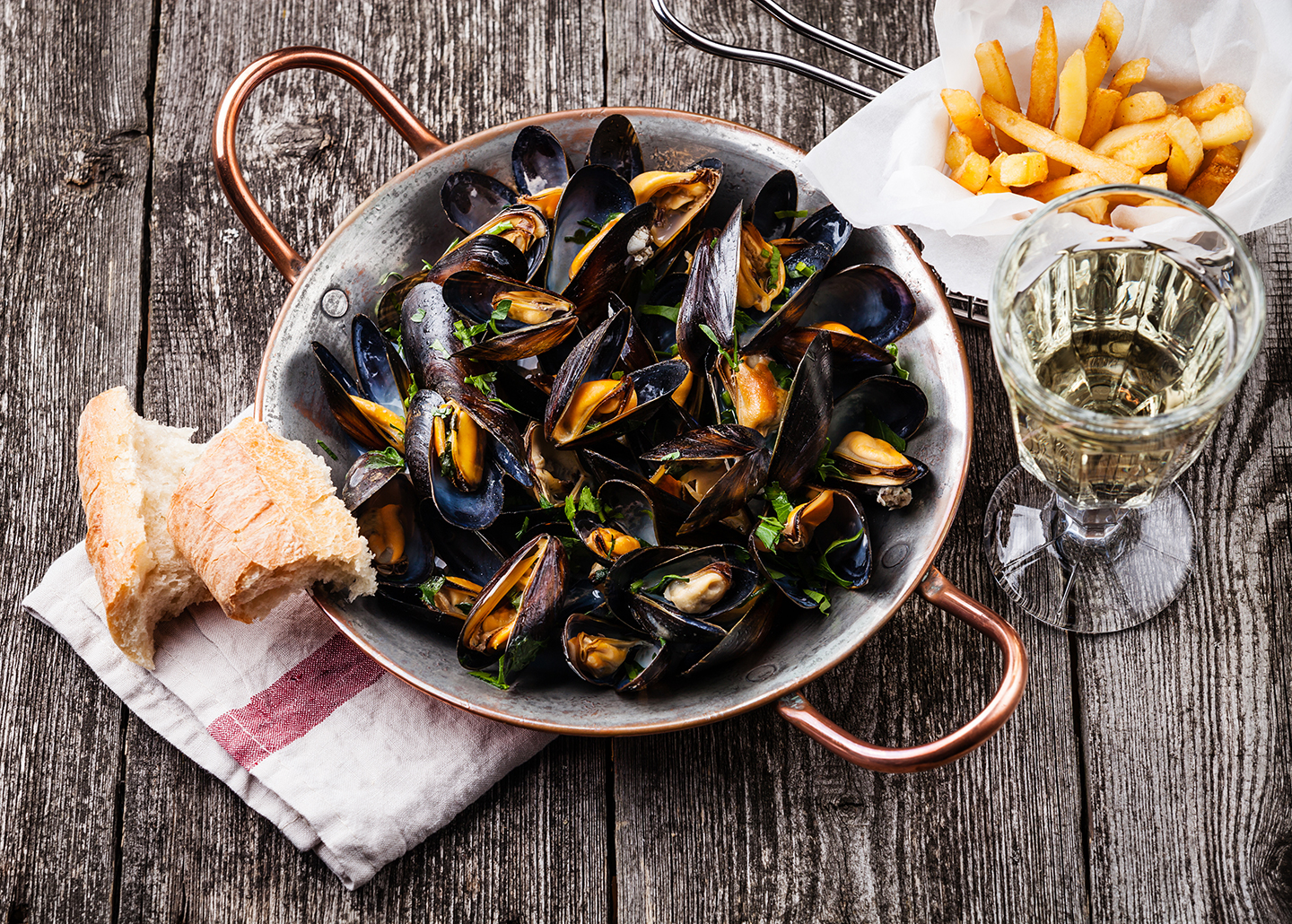 In der Bucht von L‘Aiguillon werden Miesmuscheln seit dem 13. Jahrhundert an Pfählen gezüchtet. Diese Eichenholzpflöcke werden mitten ins Watt gesetzt und schützen die Muscheln vor Sand! Im Gezeitenverlauf werden die Pfähle von Meerwasser benetzt und verleihen den Miesmuscheln ihren exquisiten Geschmack. In diesem traditionellen Terroir experimentieren die Miesmuschelzüchter heutzutage erfolgreich mit einer neuen Zuchttechnik, der Langleinenkultur. Fleischige Miesmuscheln werden von Mai bis Dezember genossen.