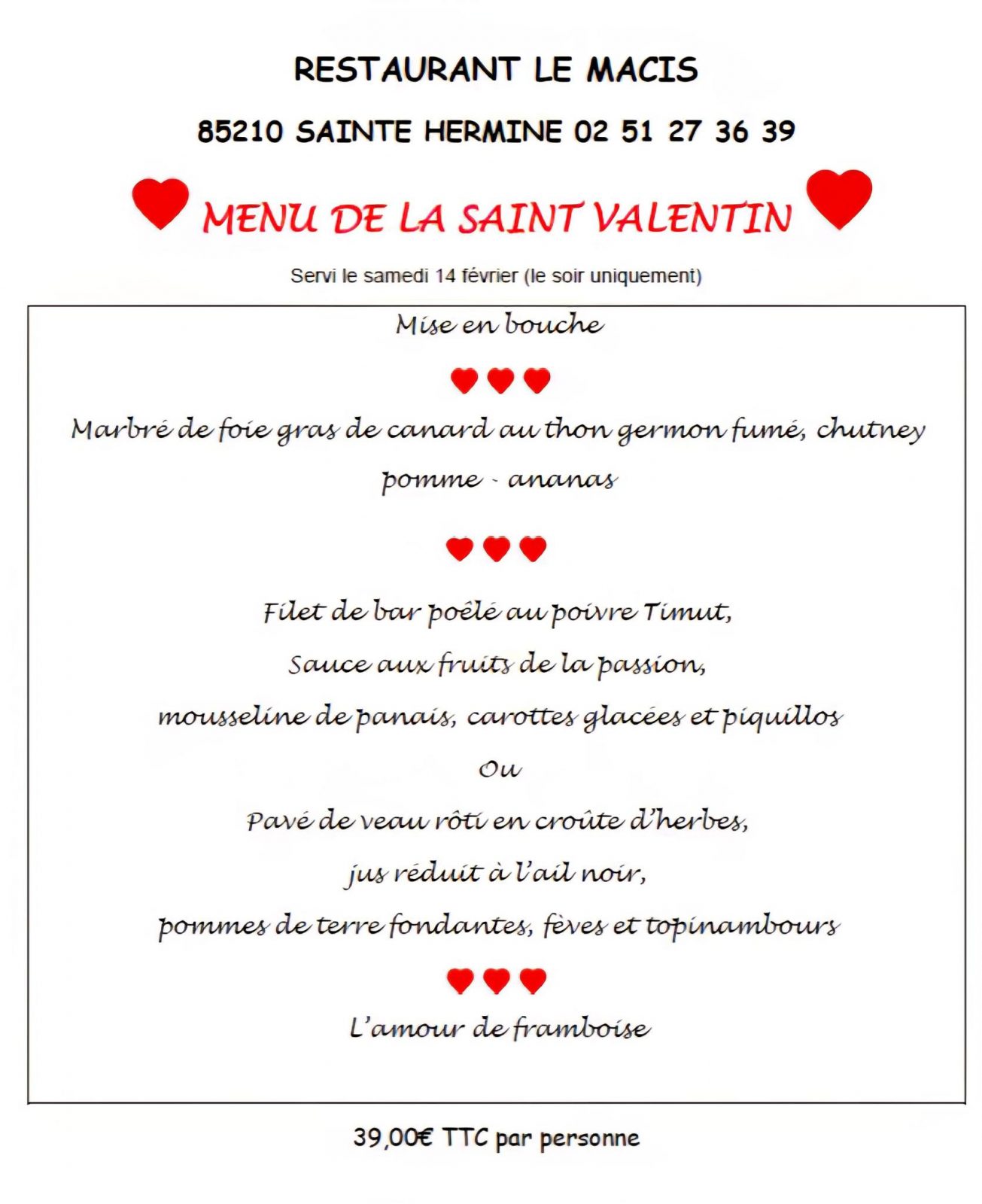 - A la carte : de 12,50 € à 19,90 €