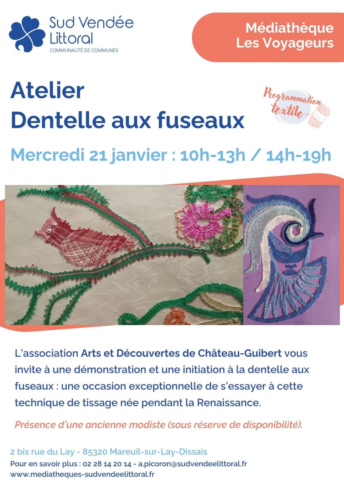Der Verein Arts et Découvertes de Château-Guibert lädt Sie zu einer Vorführung und Einführung in die Klöppelspitze ein: eine außergewöhnliche Gelegenheit, sich an dieser während der Renaissance entstandenen Webtechnik zu versuchen.