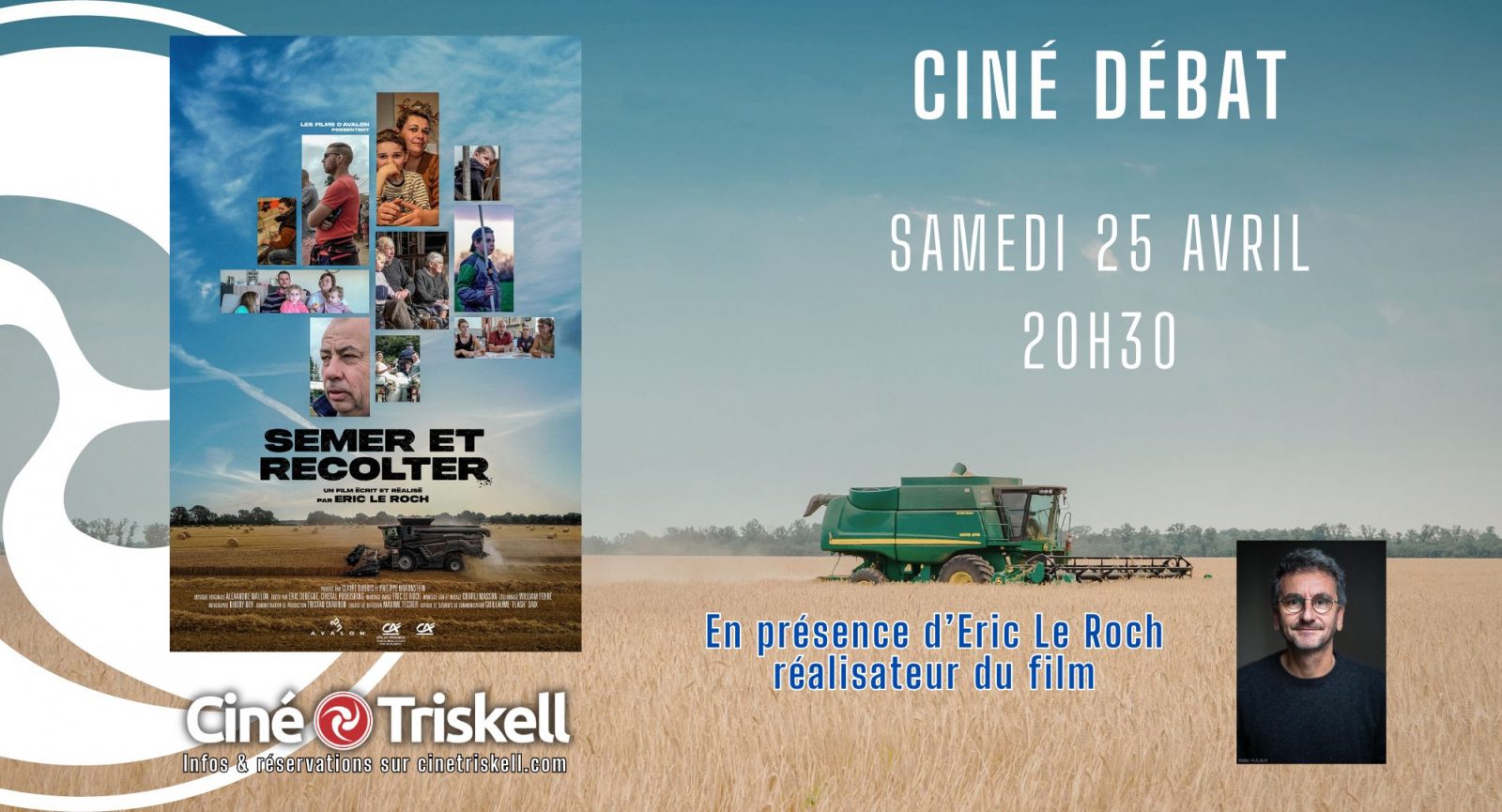 Entdecken Sie den Film "Semer et Récolter" bei einer Filmdebatte am 25. April 2026 um 20.30 Uhr in Anwesenheit des Regisseurs Eric le Roch in Ihrem CinéTriskell in Luçon!