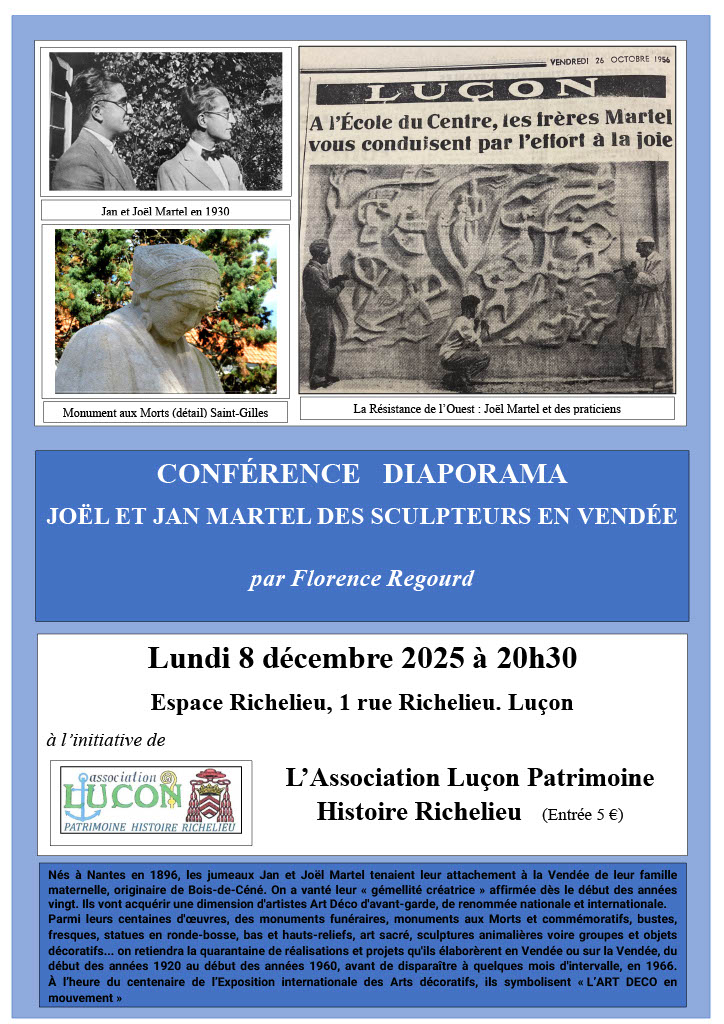 Die 1896 in Nantes geborenen Zwillinge Jan und Joël Martel hatten ihre Verbundenheit mit der Vendée von ihrer Familie mütterlicherseits, die aus Bois-de-Céné stammte. Man rühmte ihre "kreative Zwillingsbruderschaft", die sich seit Anfang der 1920er Jahre bestätigte. Sie wurden zu Art-Déco-Künstlern der Avantgarde, die national und international bekannt waren.