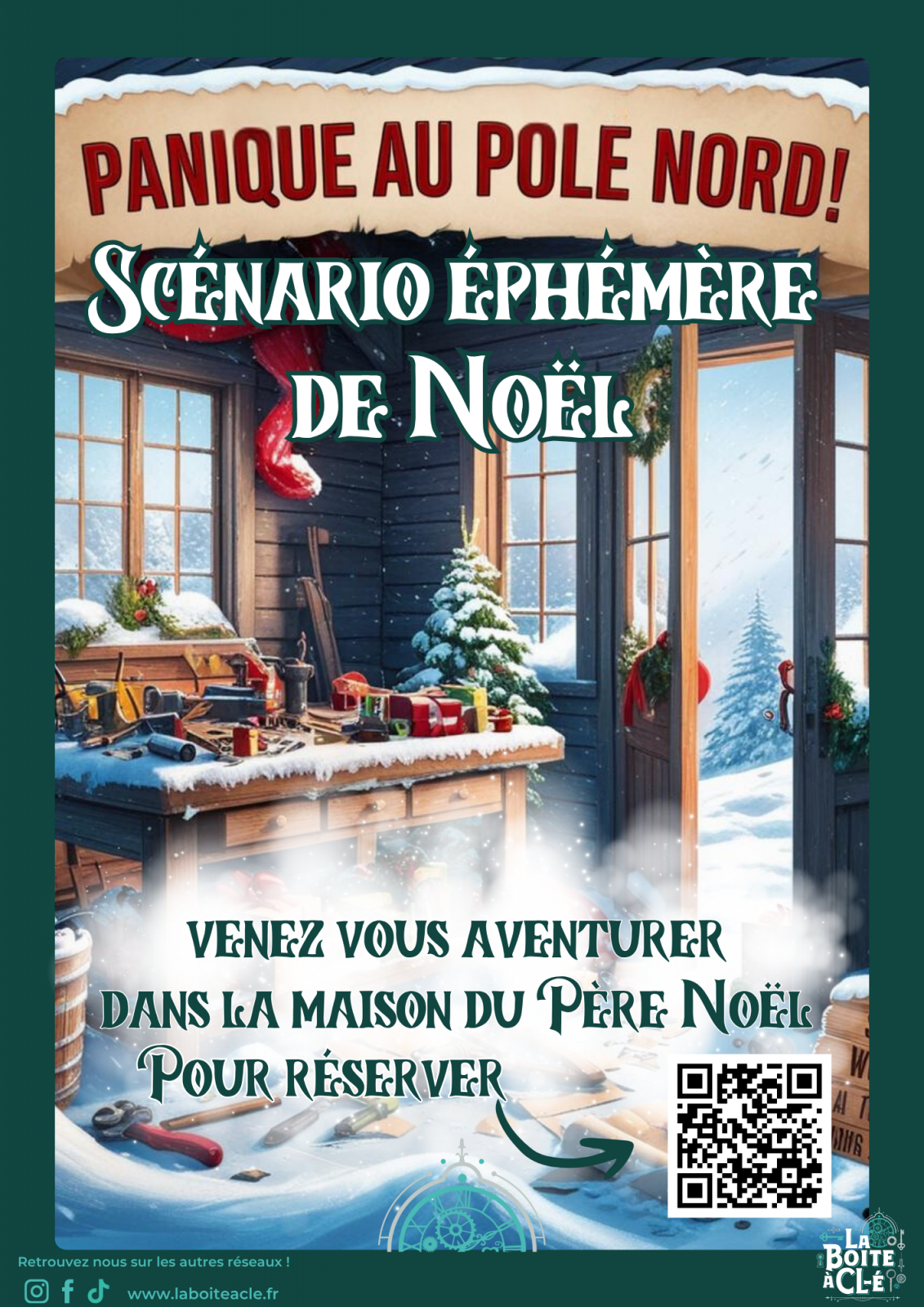 Entdecken Sie das kurzlebige Weihnachts-Escape-Game von La Boite à CL-é! Dieses Szenario hat bereits im letzten Jahr viele Spieler begeistert, dieses Jahr sind Sie an der Reihe, Weihnachten zu retten!