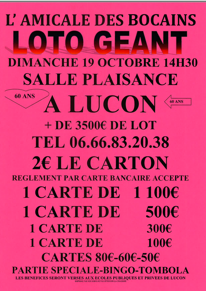 60 Jahre Amicale des Bocains Luçonnais. Gewinne: 1100, 500 usw. + 3500 Lose