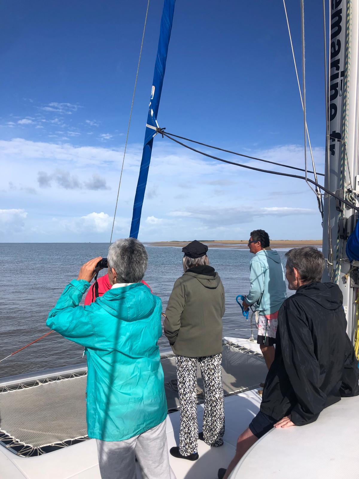 Mit dem Katamaran fahren wir die Lay-Mündung hinunter bis zur Pointe d'Arçay, wo wir an Land gehen, um ein Picknick zu machen und die Vögel zu entdecken, die das Watt bevölkern.