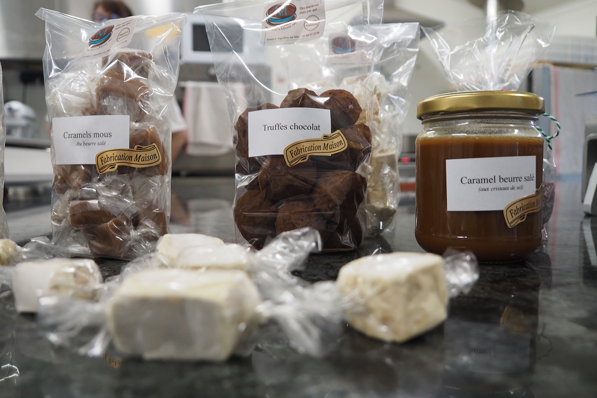 Und ich spreche nicht von Christels Fruchtgelees, ihrem Nougat, ihren Schokoladentrüffeln, ihren Logs, ihren “Fions vendéens”, ihren Mille-feuilles, ihren Makronen, die einfach nur grandios sind. Echte Gourmet-Emotion ?.