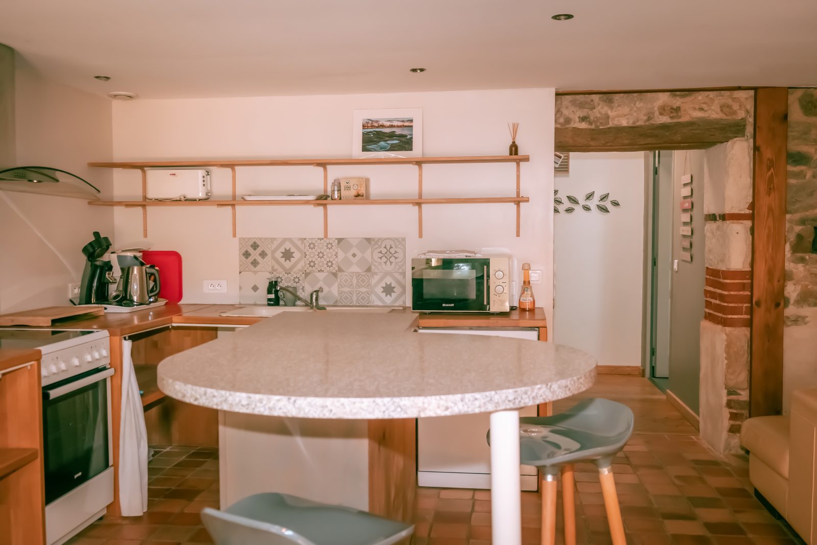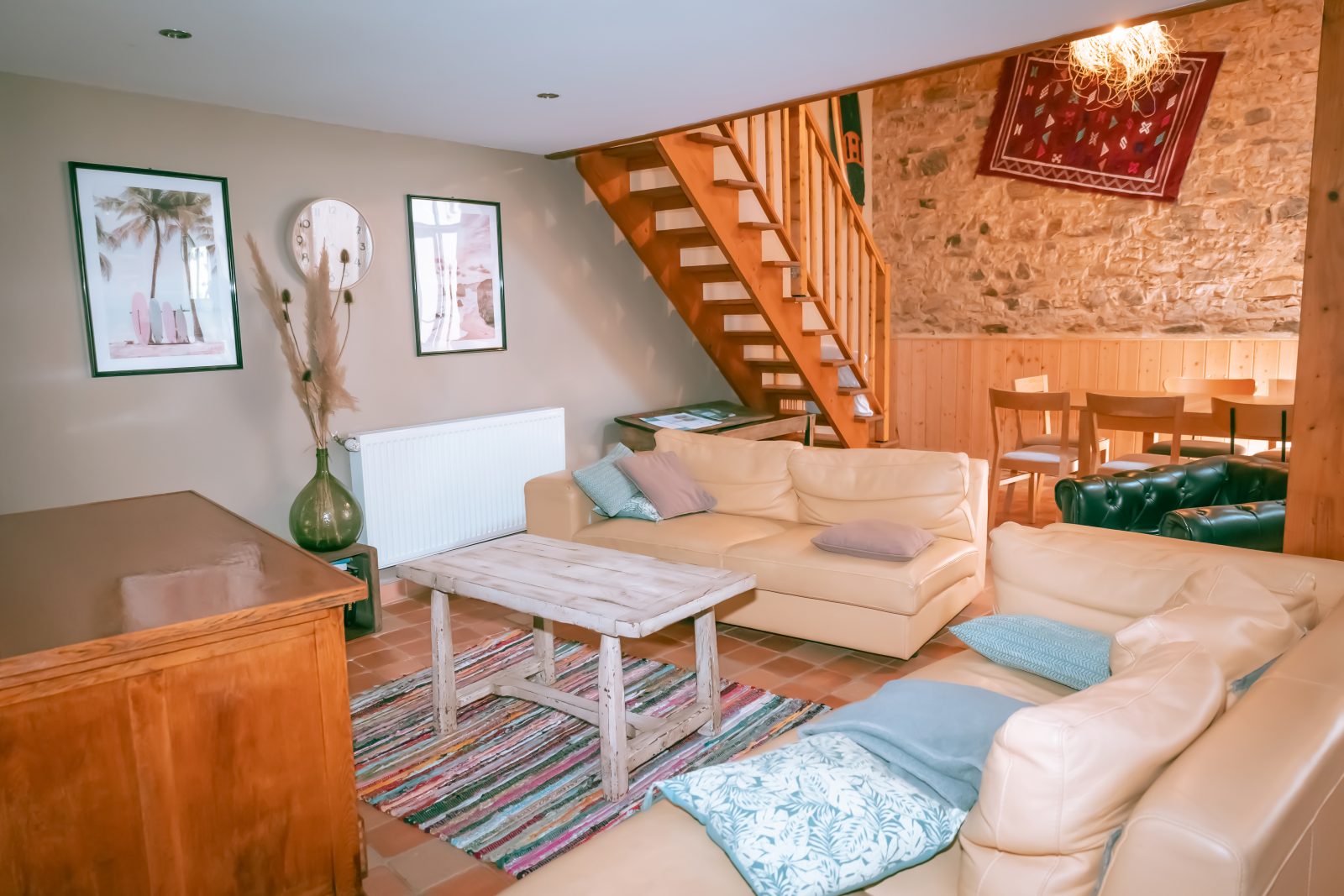 Im Erdgeschoss befinden sich drei Schlafzimmer (Einzel- oder Doppelbetten), ein Badezimmer und ein Duschbad mit Toilette, eine separate Toilette, ein Zwischengeschoss mit einem Schlafzimmer, einem Duschbad und einem Raum mit einem Etagenbett für zwei Personen.