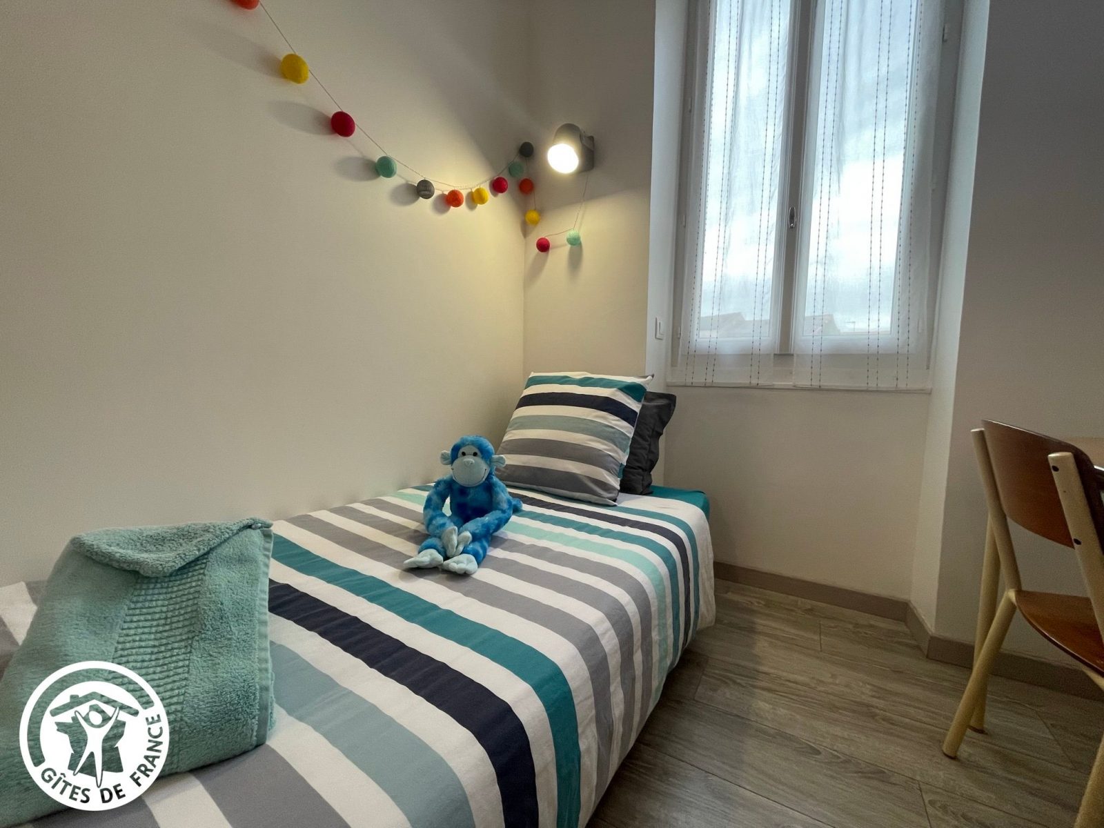 Haus, das an die Eigentümer und an ein anderes Wohnhaus aus dem 19. Jahrhundert angrenzt, 150 m vom Zentrum entfernt, vollständig renoviert. Das Ferienhaus besteht im Erdgeschoss aus einem Eingang (mit kleiner Terrasse und Markise an der Fassade), einem ersten Schlafzimmer (2 Einzelbetten), einem Badezimmer mit WC, einem Wohn-/Wohnzimmer/Küche, einem zweiten Schlafzimmer (1 Bett 160). Obergeschoss: zwei Schlafzimmer (1 Bett 160) (1 Bett 180), ein Badezimmer mit WC. Wifi.