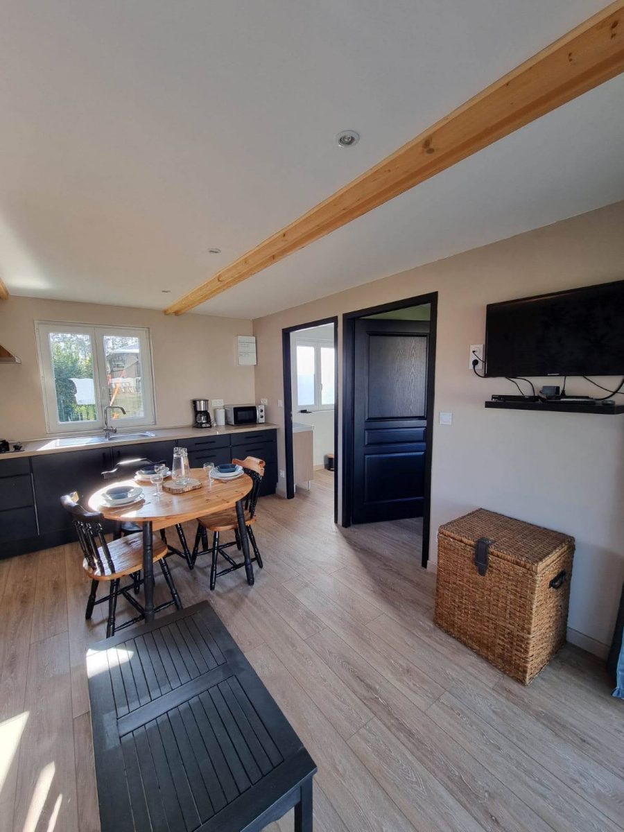 Ein Wohnraum (Esszimmer, Sofabett, Fernseher, umkehrbare Klimaanlage)