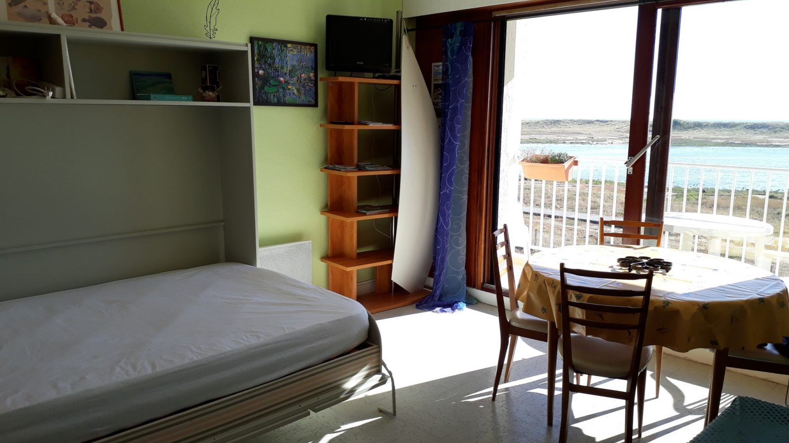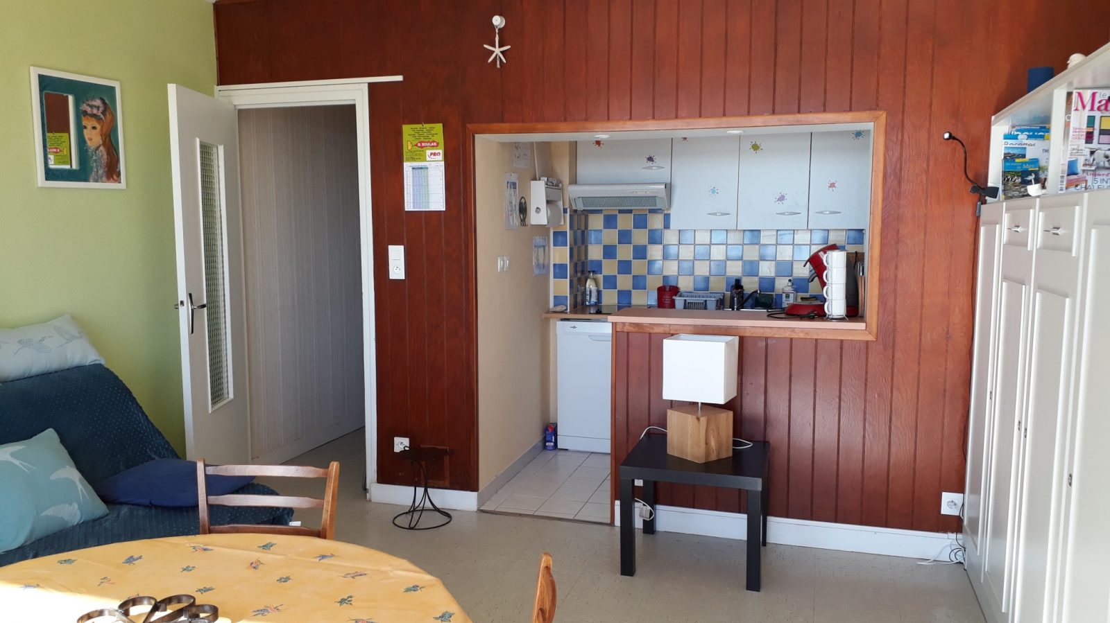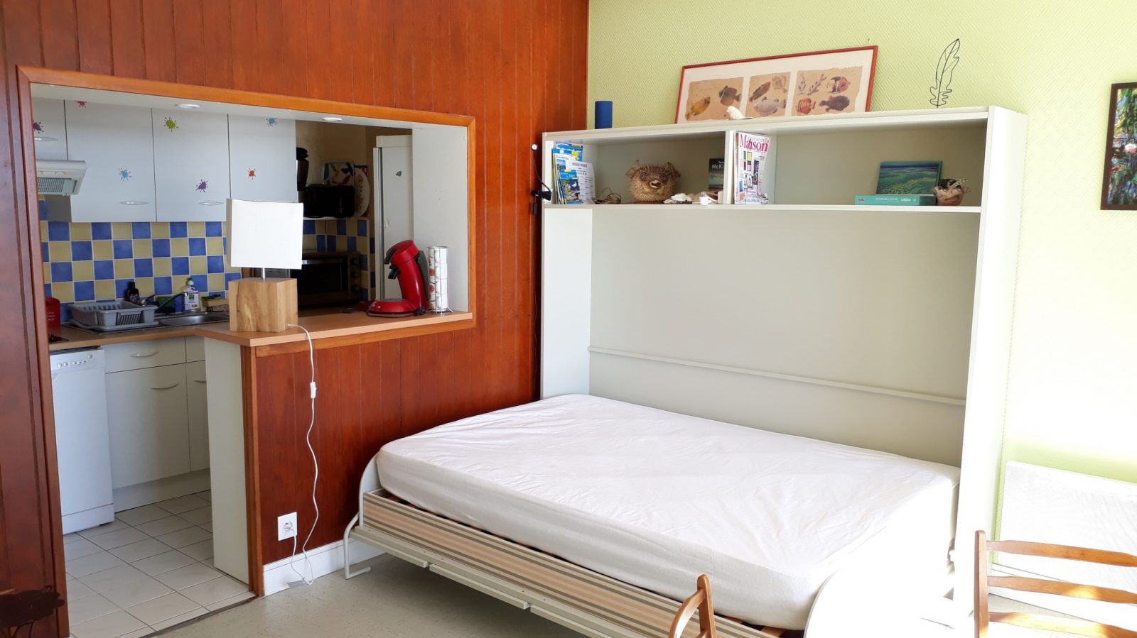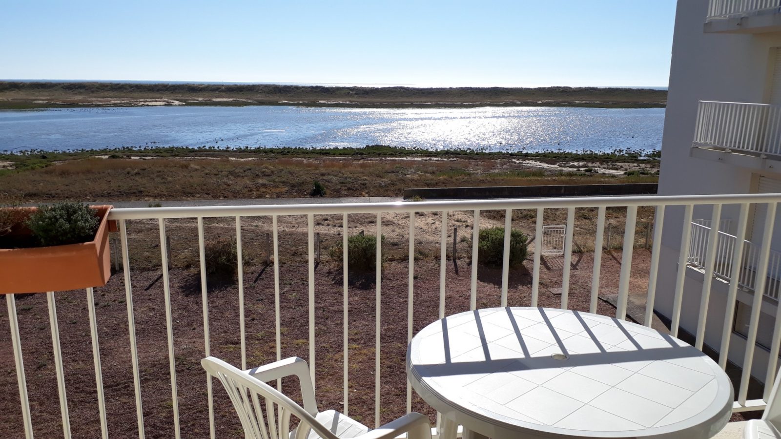 Dieses Studio besteht aus einem Flur (mit Schrank), der zum Wohnraum mit einem Schlafsofa und einem Klappbett (140 cm) führt, einer Küchenzeile (2 Ceranfelder, Kühlschrank mit Gefrierfach, Backofen) mit Geschirrspüler, Badezimmer mit WC (Waschmaschine). Balkon mit Süd-West-Ausrichtung. Parkplatz, Fahrradraum und Tennisplatz für die Bewohner des Gebäudes. Kleine Haustiere sind erlaubt. Stock mit atemberaubendem Blick auf die Lagune und den Ozean und nur 400 m von den Stränden und 800 m vom Stadtzentrum entfernt, wo Sie alle Geschäfte vorfinden. Kleine Haustiere sind erlaubt.