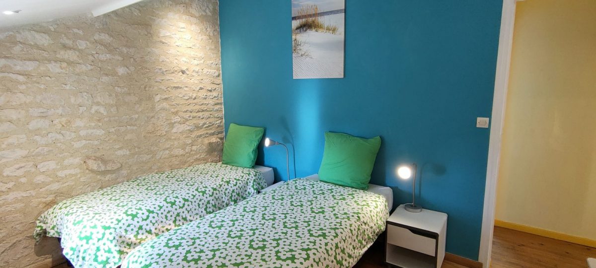 Ein Bett 160, ein Bett 140 und fünf Betten 90 verteilt auf zwei Zimmer.