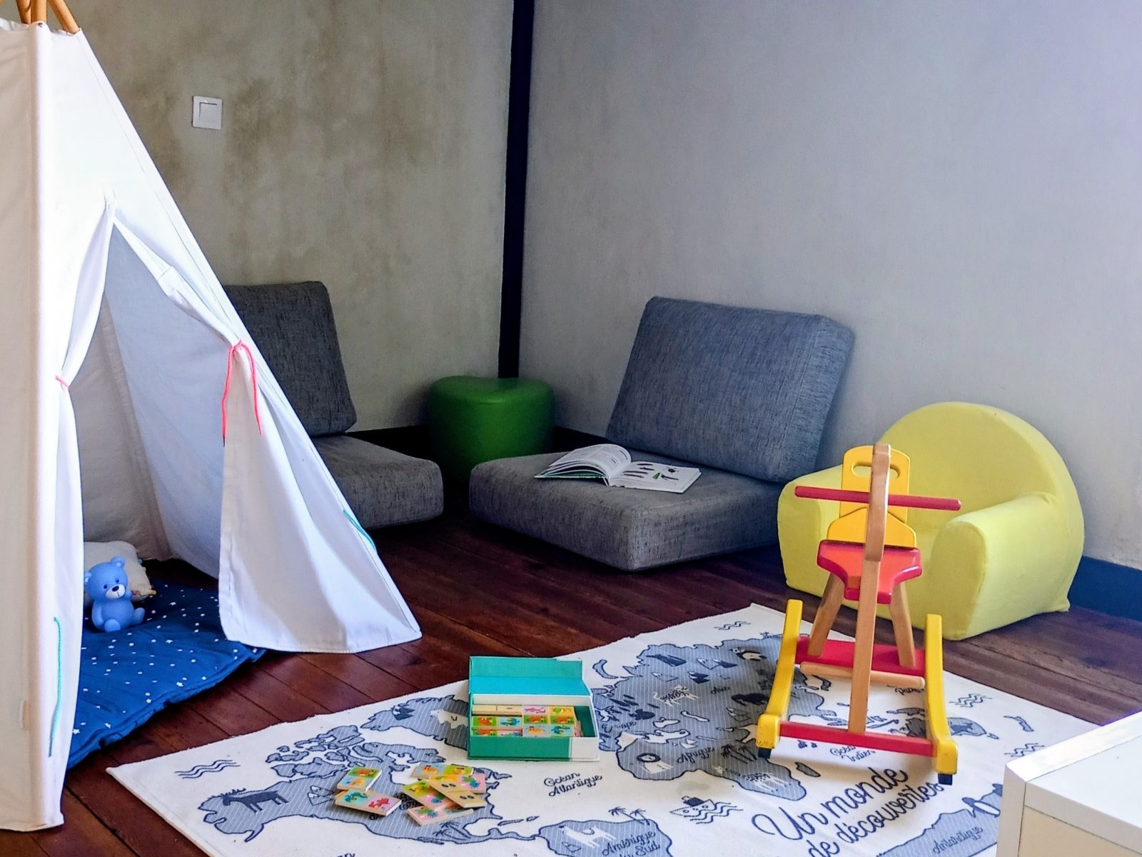 - Bereitstellung von Babyausstattung auf Anfrage: Reisebett(2), Matratze, Spannbettlaken aus Baumwolle, Badewanne, Töpfchen, mitwachsende Stühle (2).