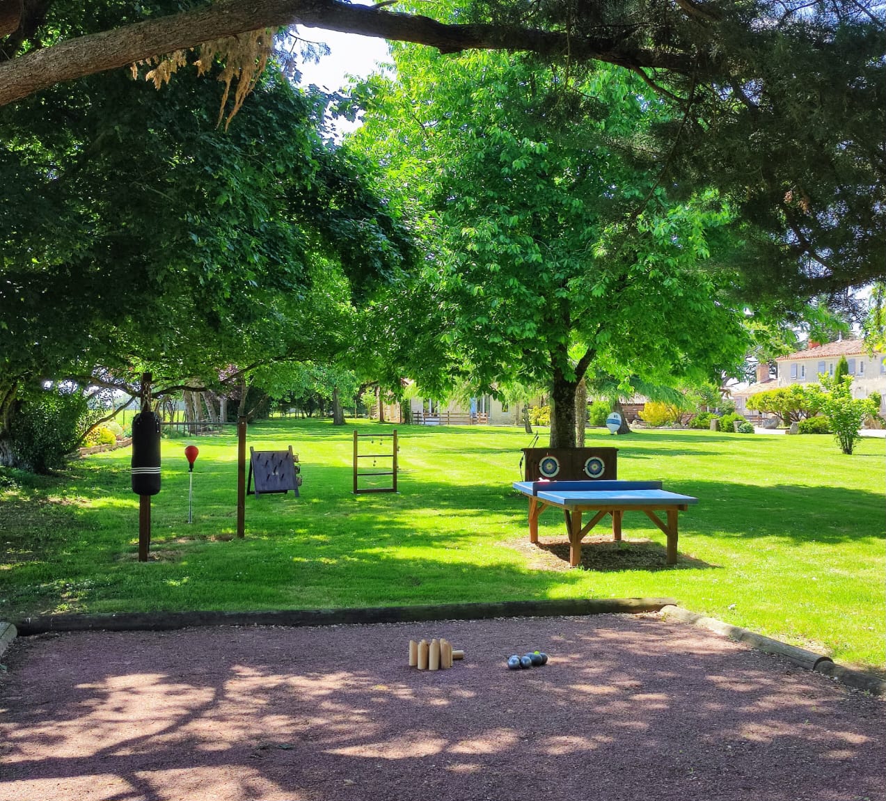 Großer Garten mit Boule-/Molkky-Platz. Spiele können vor Ort ausgeliehen werden.